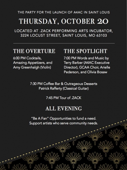 Attendees toured the .Zack, mingled with artists and arts-supporters while enjoying hors d'oeuvres catered by David Kirkland, formerly of Café Osage. Come by and see what this new innovative space and A4AC organization have in store for St. Louis!